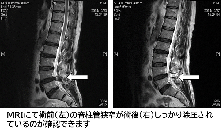 腰部脊柱管狭窄症に対しては従来、棘突起切除もしくは棘突起縦割した後に椎弓切除、黄色靱帯切除することで狭窄した脊柱管を拡大し、脊髄を除圧しておりましたが、約16mmの円筒を使用してできるだけ低侵襲に脊髄を除圧することで早期社会復帰を目標としております。