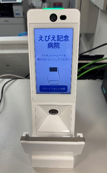 スマホ保険証として利用できる機器は、外来受付・入院受付の2カ所に用意しております。